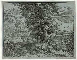 Landschap met een herderpaar(Landscape with a Shepherd Couple)Hendrik Goltzius |