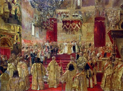 Studie voor de kroning van Tsaar Nicolaas II en Tsarina Alexandra in de Kerk van de Hemelvaart, Moskou, 14 mei 1896(Study for the Coronation of Tsar Nicholas II (1868-1918) and Tsarina Alexandra (1872-1918) at the Church of the Assumption, Moscow, 14th may 1896 )Henri Gervex |