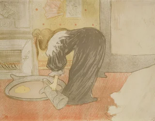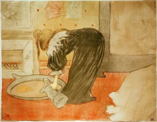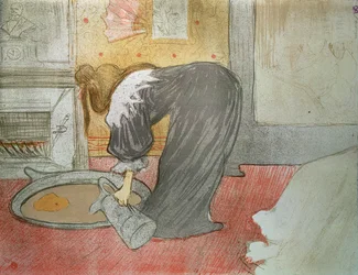 Elles: Vrouw bij het bad · Henri de Toulouse-Lautrec. Beschikbaar als kunstdruk op canvas, fotopapier, aquarelkarton, ongecoat papier of Japans papier.