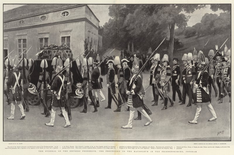De begrafenis van keizerin Frederick, de processie naar het mausoleum in de Friedenskirche, Potsdam(The Funeral of the Empress Frederick, the Procession to the Mausoleum in the Friedenskirche, Potsdam )Henry Marriott Paget |