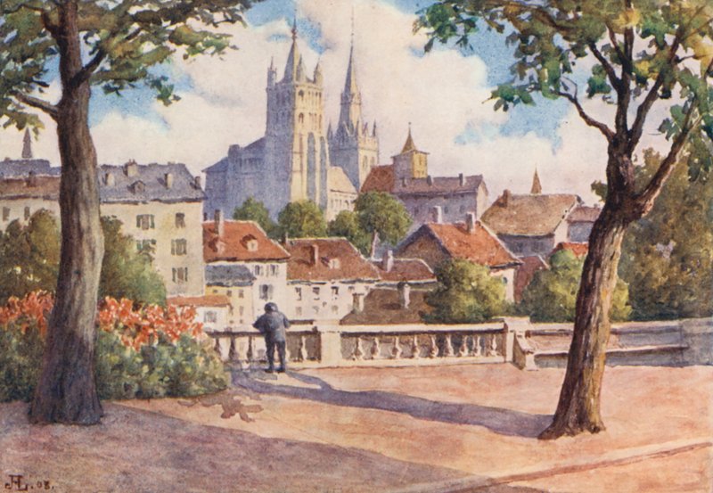 Kathedraal van Lausanne vanaf Montbenon(Lausanne Cathedral from Montbenon (colour litho))J. Hardwicke Lewis |