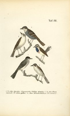 Sperwergrasmus, Zwartkop en Blauwborst(Barred Warbler, Eurasian Blackcap and Bluethroat)J. W. Tenhaeff |