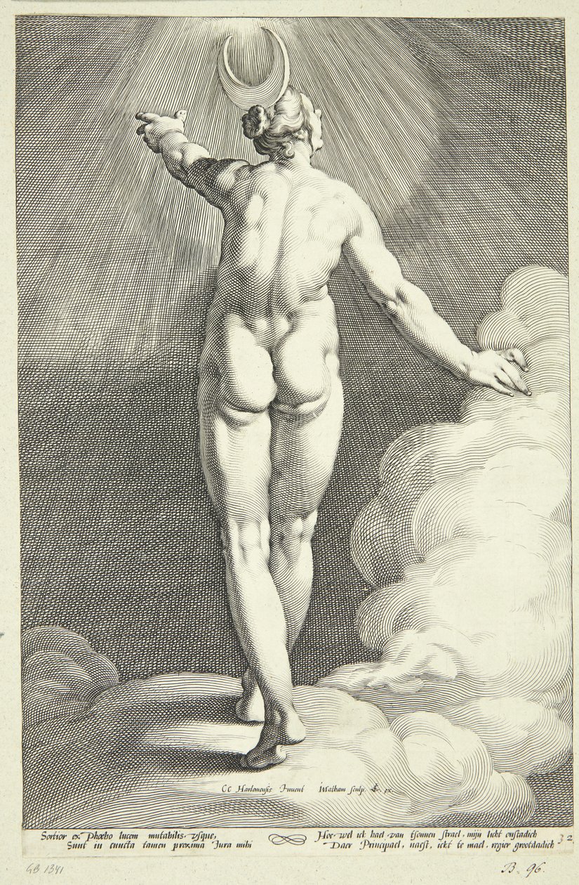 Diana als Luna(Diana som Luna)Jacob Matham,Cornelis Cornelisz. van Haarlem(after model by),Claes Jansz. Visscher(publisher) |
