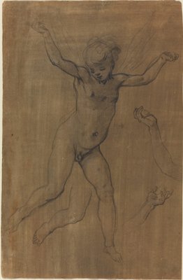 Een vliegende engel, ca. 1594 (zwart krijt en grafiet op bruin geprepareerd papier)(An Angel in Flight, c.1594 (black chalk and graphite on brown prepared paper))Jacopo Chimenti Empoli |