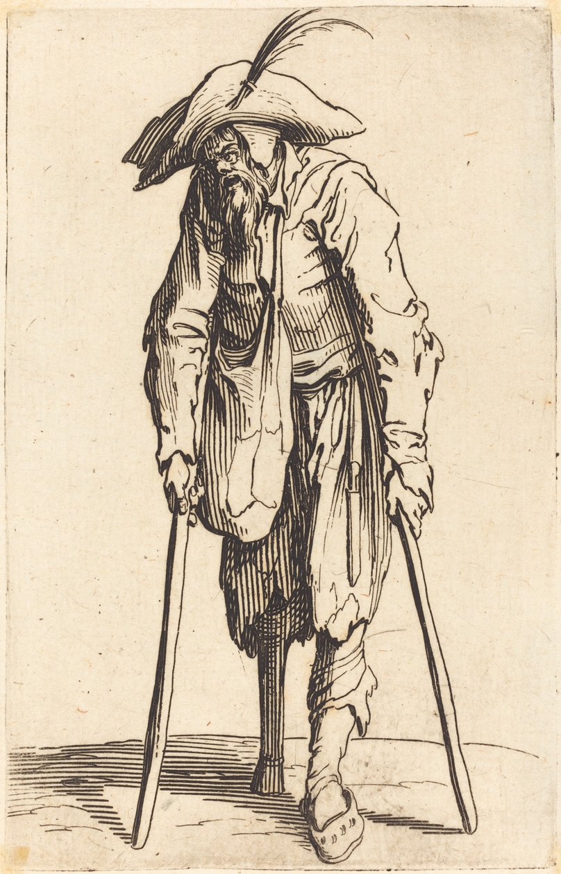 Bedelaar met houten been(Beggar with Wooden Leg, c. 1622. )Jacques Callot |