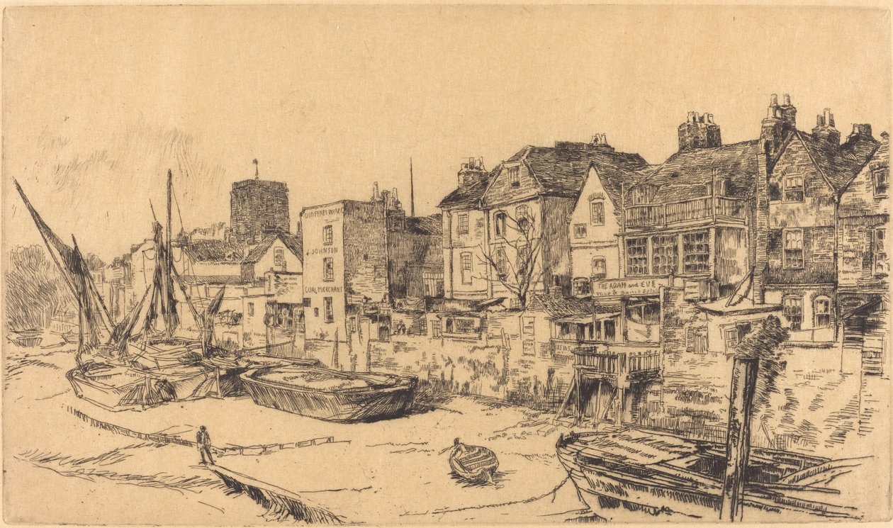 De 'Adam en Eva', Oud Chelsea(The 'Adam and Eve', Old Chelsea)James Abbott McNeill Whistler |