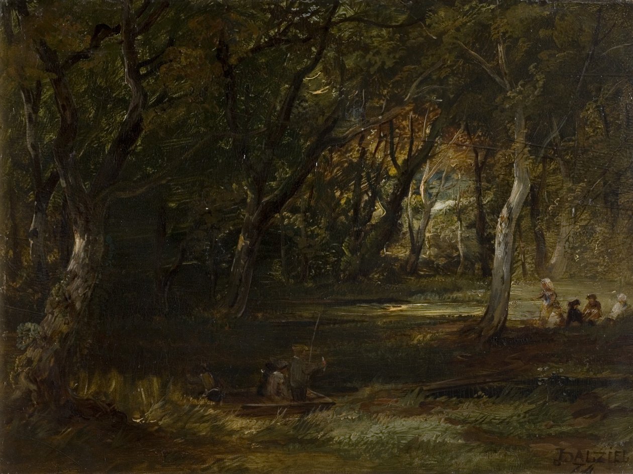 Figuren in het bos(Figures in Woodland (oil on panel (wood)))James B. Dalziel |