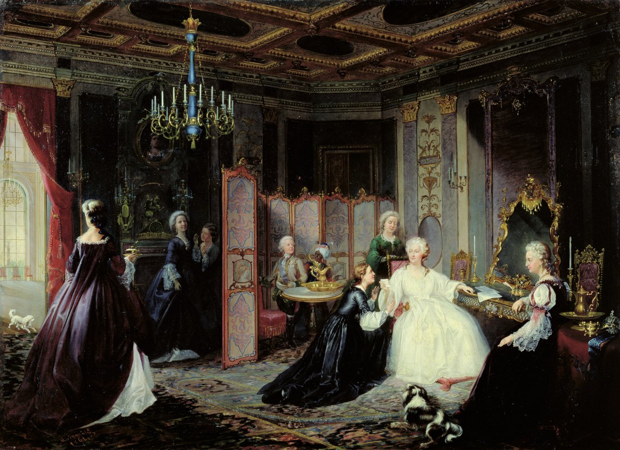 Keizerin Catharina de Grote (1729-96) ontvangt een brief, 1861(Empress Catherine the Great (1729-96) receiving a letter, 1861 )Jan Ostoja Mioduszewski |