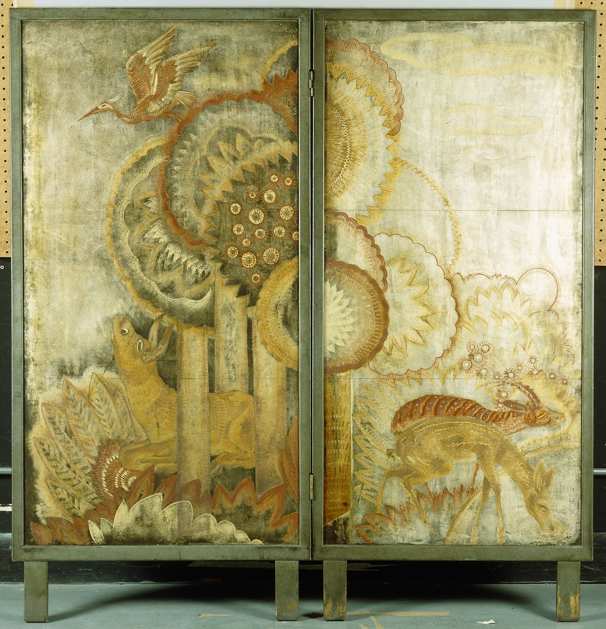 Niet gedateerd · lacquered panels mounted together in hinged grey framework
