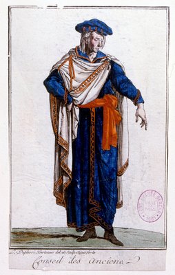 Illustratie van het uniform van een lid van het Directoire, Directoire(Illustration depicting the uniform of a member of the Directoire, Directory)Jean Duplessi-Bertaux |