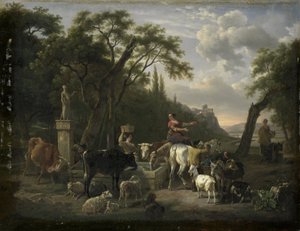 (Italian Landscape with Shepherds and Animals at a Fountain)Jean Louis Demarne |