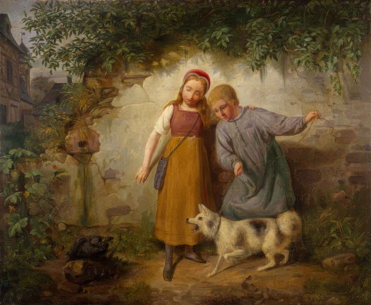Twee kinderen met een Spitz(Zwei Kinder mit einem Spitz)Johann Baptist Zwecker |