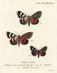 Onderwing motten, Catocala pacta en Catocala coniuncta. Handgekleurde kopergravure door Johann Carl Bock naar Eugenius Johann Christoph Esper's Die Schmetterlinge in Abbildungen nach der Natur, Erlangen(Underwing moths, Catocala pacta and Catocala coniuncta. Handcoloured copperplate engraving by Johann Carl Bock after Eugenius Johann Christoph Esper’s Die Schmetterlinge in Abbildungen nach der Natur, Erlangen)Johann Carl Bock |