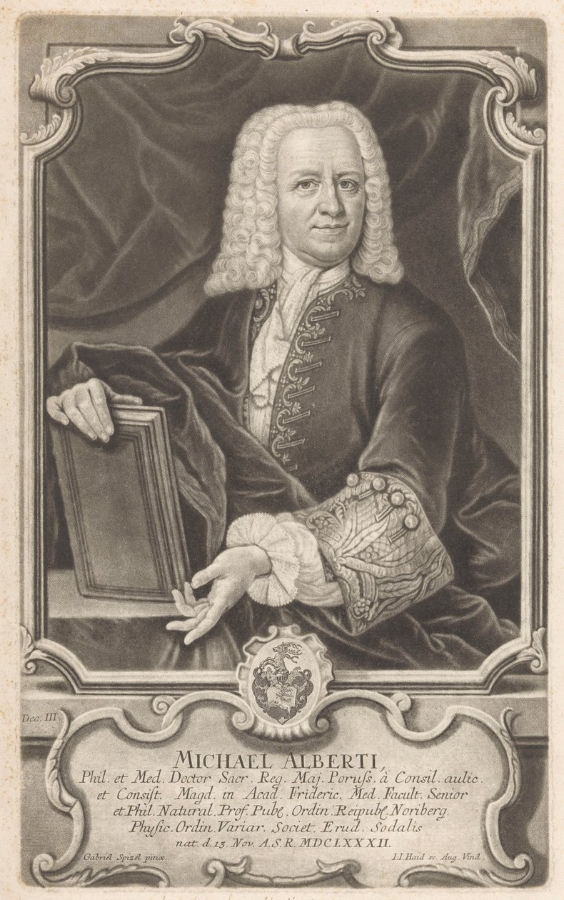 Portret van Michael Alberti(Portrait of Michael Alberti)Johann Jacob Haid(print maker),Gabriel Spitzel(after painting by) |