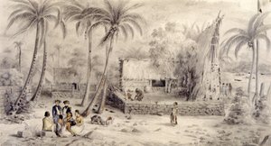 Indianen bezoeken een landgoed, Brazilië, c.1825(Indians visiting an estate, Brazil, c.1825 (pen and brown ink over pencil))Johann Moritz Rugendas |