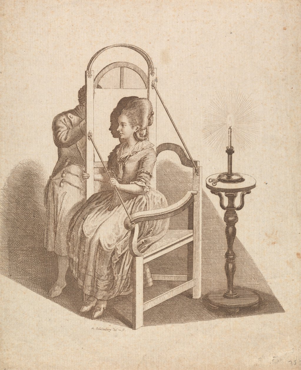 Kunstenaar tekent het silhouet van een vrouw(Artist Drawing a Woman's Silhouette)Johann Rudolph Schellenberg |