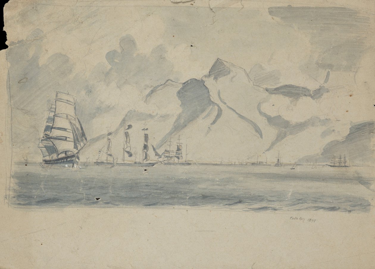 Uitzicht op Tafelbaai met schepen(View of Table Bay with ships)John Everett |