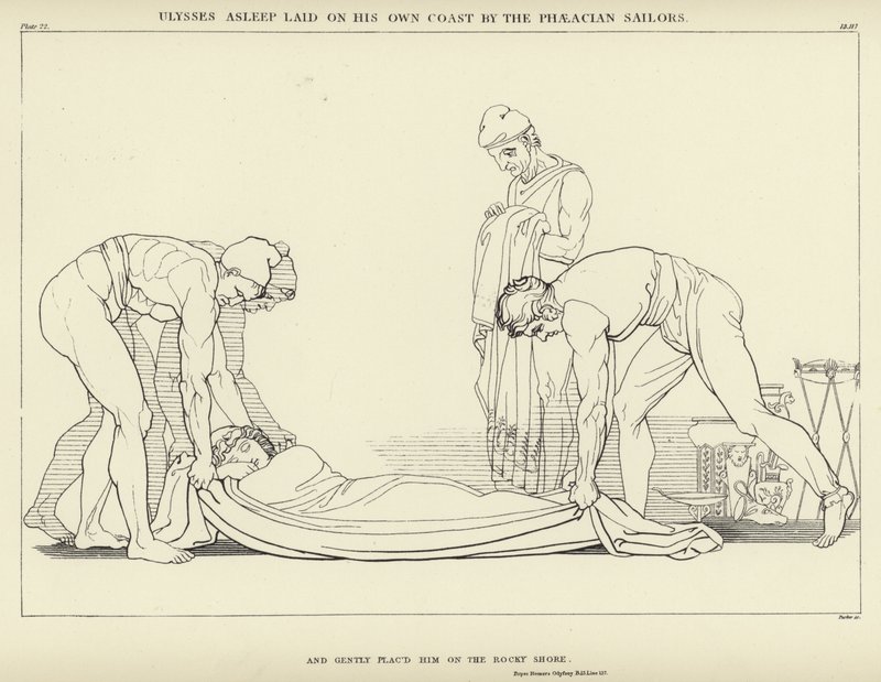 Ulysses slapend op zijn eigen kust gelegd door de Phaeacische zeelieden(Ulysses asleep laid on his own Coast by the Phaeacian Sailors )John Flaxman |