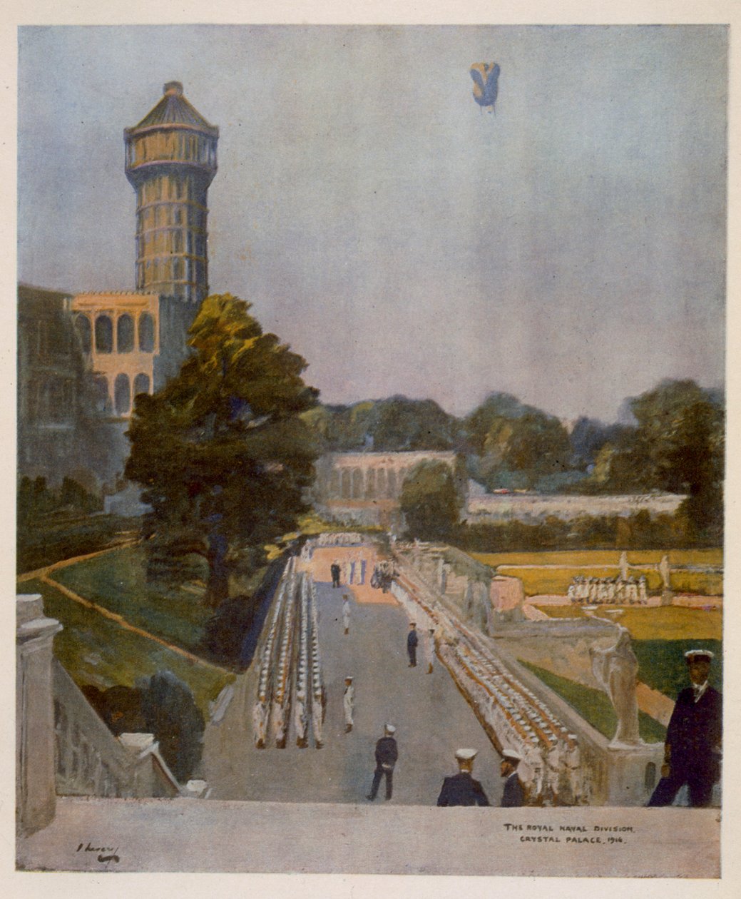 R.N.D. Crystal Palace, de plek bekend als het kwartdek, uit Britse kunstenaars aan het front, voortzetting van het westelijk front, 1918(R.N.D. Crystal Palace, the Spot Known as The Quarter-Deck, from British Artists at the Front, Continuation of The Western Front, 1918 )John Lavery |