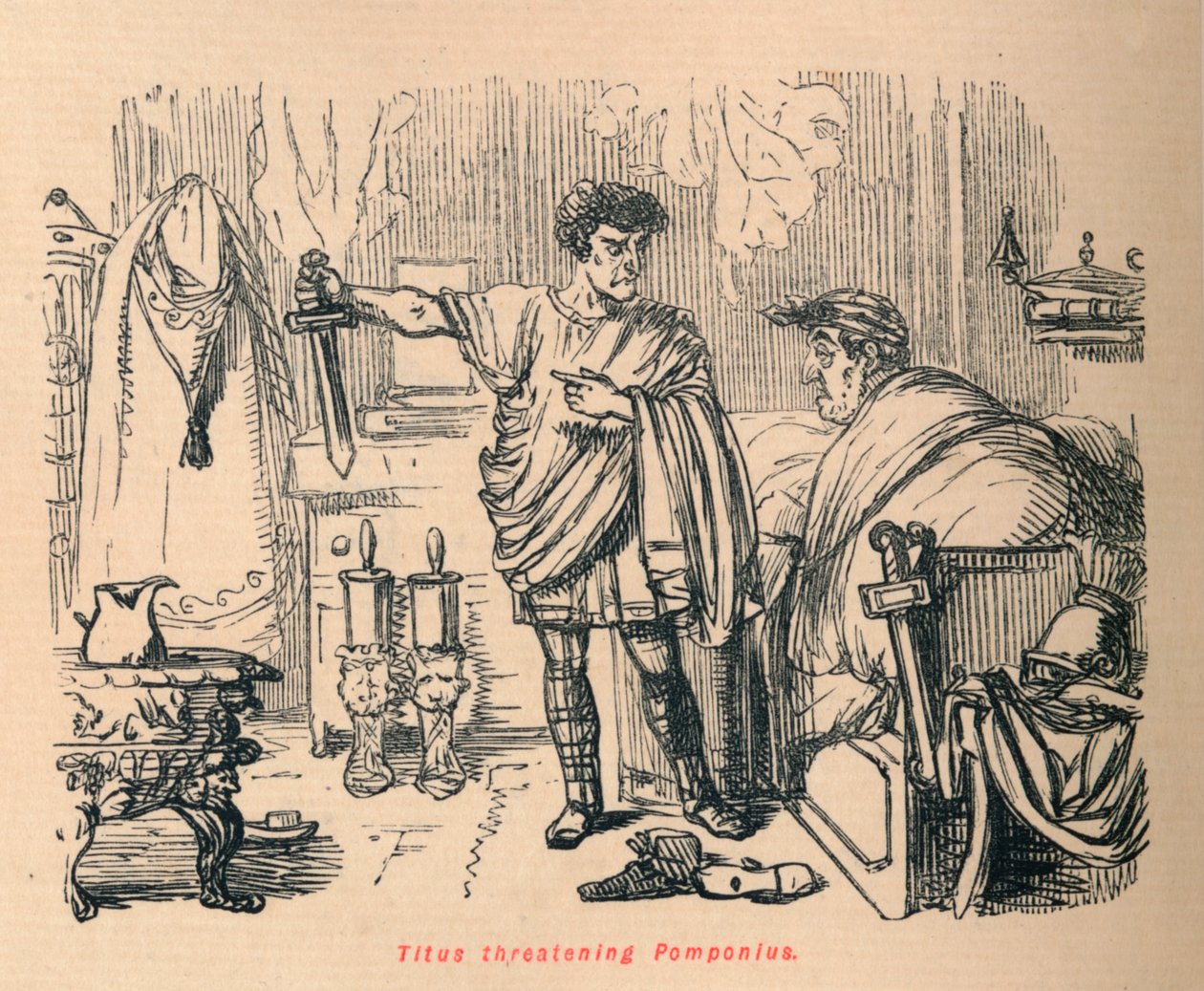 Titus bedreigt Pomponius, 1852(Titus threatening Pomponius, 1852)John Leech |