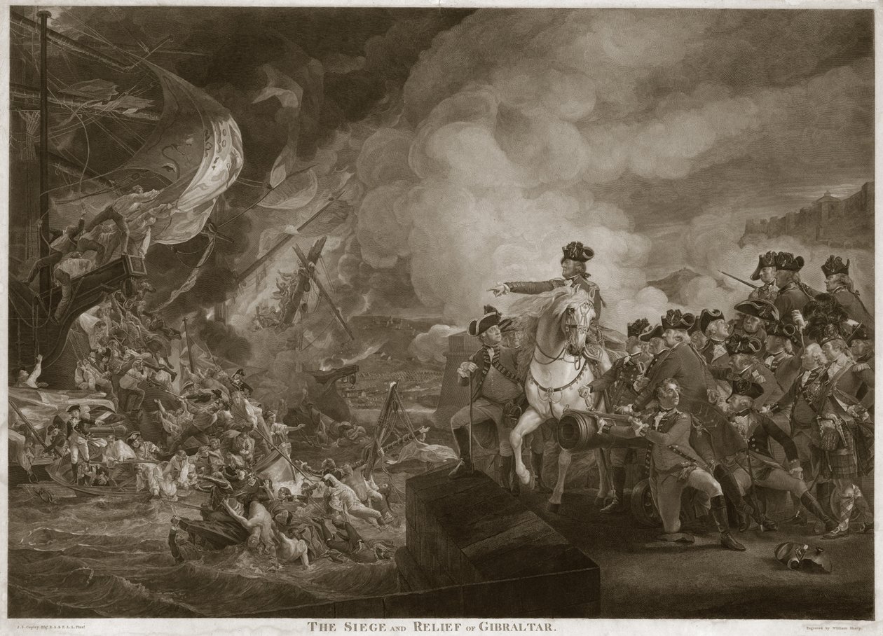Het Beleg en de Bevrijding van Gibraltar, gepubliceerd 1810(The Siege and Relief of Gibraltar, pub. 1810 )John Singleton Copley |