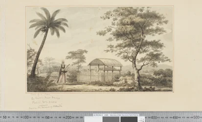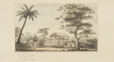 45: Uitzicht op een Graf, uit een serie aquarellen die de laatste reis van Kapitein Cook illustreren, c.1773-84(45: View of a Tomb, from a series of watercolours illustrating Captain Cook's last voyage, c.1773-84 (watercolor on paper))John Webber |