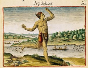 Kenmerkende Markeringen van een Krijger uit Virginia, uit Admiranda Narratio(Distinctive Markings of a Warrior of Virginia, from Admiranda Narratio..)John White |