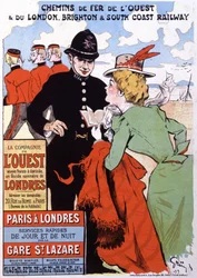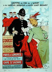 Poster die treinverbindingen van Parijs naar Londen voor de Compagnie des Chemins de Fer de l'Ouest aankondigt(Poster advertising train services from Paris to London for the Compagnie des Chemins de Fer de l'Ouest)Jules Alexandre Gruen or Grun |