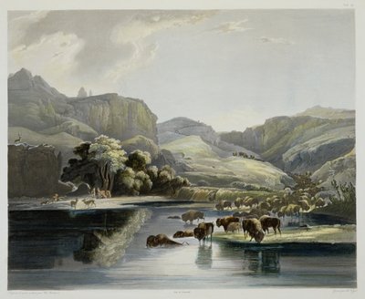 Kuddes Bizons en Elanden aan de Boven-Missouri, plaat 47 uit Volume 2 van 'Reizen in het Binnenland van Noord-Amerika', gegraveerd door Carl Vogel, 1844(Herds of Bison and Elk on the Upper Missouri, plate 47 from Volume 2 of 'Travels in the Interior of North America', engraved by Carl Vogel (1816-51) 1844 (aquatint))Karl Bodmer |