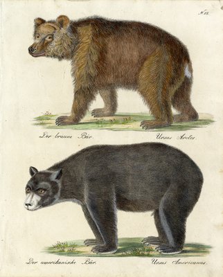Bruine beer en Amerikaanse beer (print)(Brown Bear and American Bear (print))Karl Joseph Brodtmann |