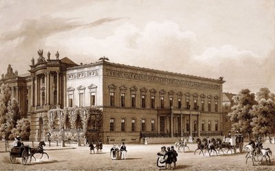 Unter den Linden, Berlijn. Het paleis van prins Wilhelm, gebouwd door Karl Langhans in 1834-36, en de Koninklijke Bibliotheek, gebouwd door Georg Christian Unger 1775-78 volgens plannen van Josef Emanuel Fischer von Erlach, met uitzicht op de Platz am Oper(Unter den Linden, Berlin. the Palace of Prince Wilhelm, built by Karl Langhans in 1834-36, and the Künigliche Bibliothek, built by Georg Christian Unger 1775-78 according to plans by Josef Emanuel Fischer von Erlach, overlooking the Platz am Opernhaus, )Karl Loeillot-Hartwig |