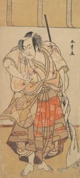 De acteur Ichikawa Yaozo III als Fuwa Banzaemon in een donderjas, spelend met een waaier · Katsukawa Shun'ei. Beschikbaar als kunstdruk op canvas, fotopapier, aquarelkarton, ongecoat papier of Japans papier.