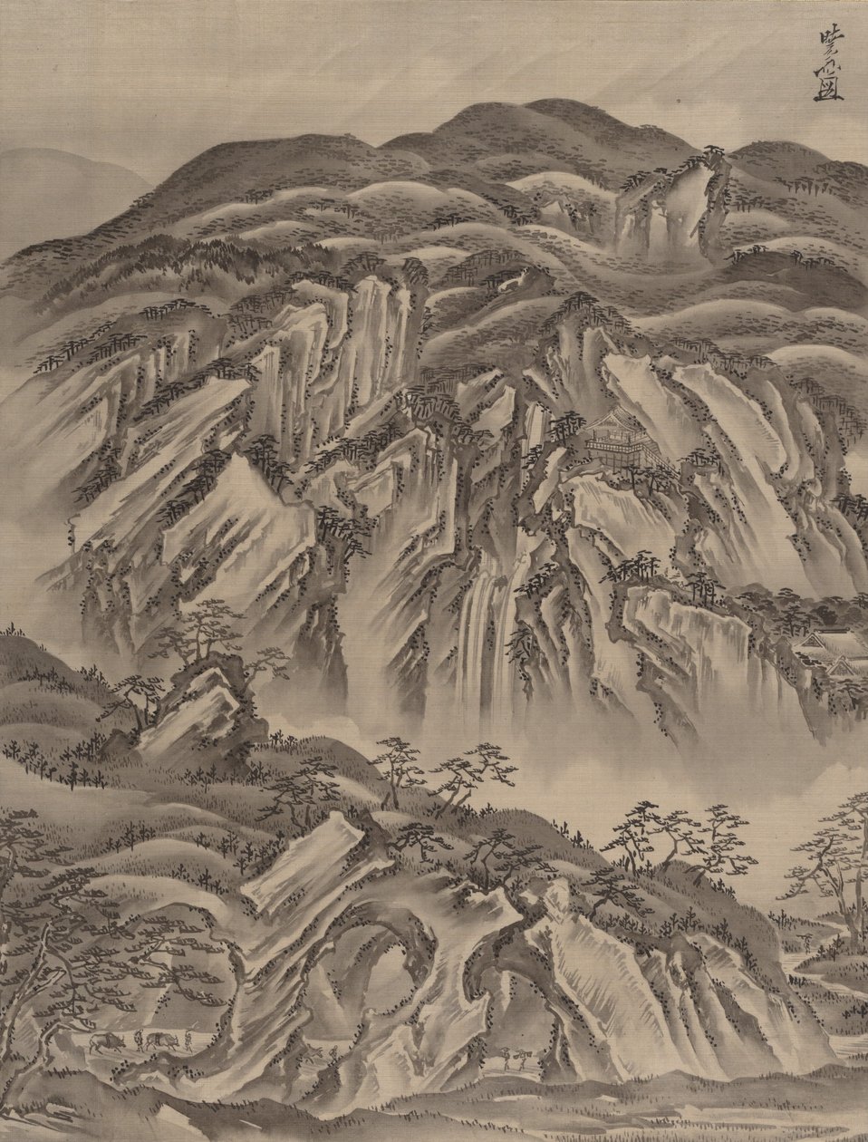 Rotsachtig Landschap(Rocky Landscape, ca. 1887. )Kawanabe Kyosai |