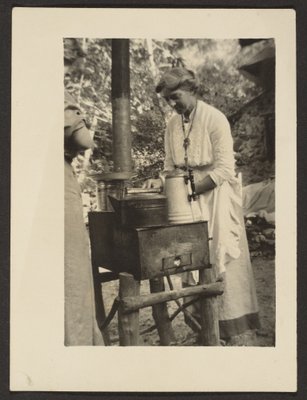 [Vrouw die buitenkachel gebruikt].([Woman Using Outdoor Stove])Louis Fleckenstein(Photographer) |