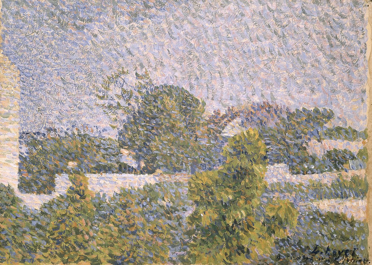 Landschap(Landscape (encaustic(?) on layered cardboard))Louis Hayet |