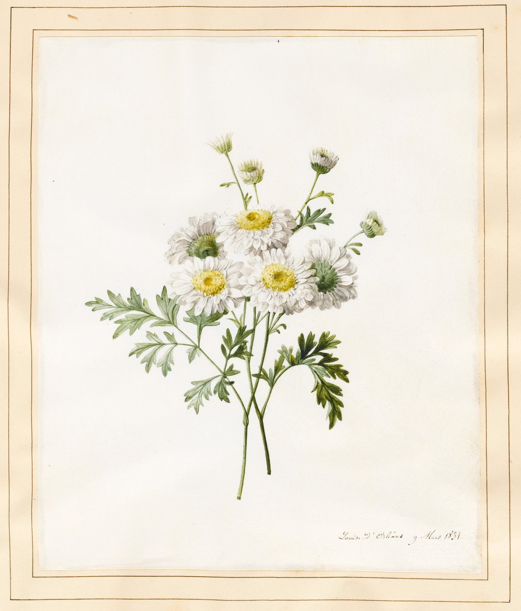 Chrysanthemum Parthenium (Batchelors Buttons), 1831(Chrysanthemum Parthenium (Batchelors Buttons), 1831 (wc with some bodycolour on vellum))Louise DOrleans |