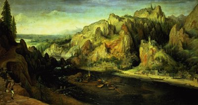 Berglandschap met rovers en hoogoven, rond 1558 (schilderij op doek)(Mountain landscape with robbers and blast furnace, around 1558 (painting on canvas))Lucas van Valckenborch |