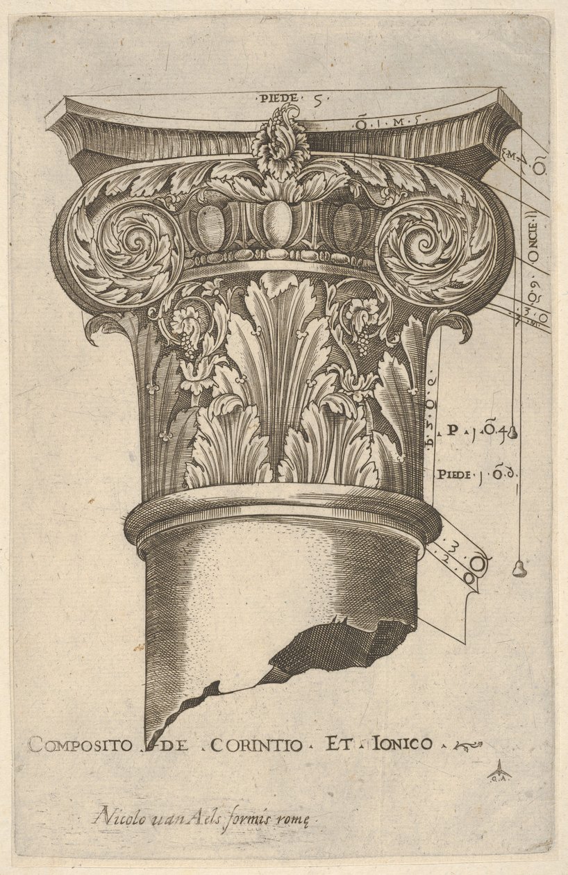 Samengesteld kapiteel met afmetingen(Composite capital with measurements, ca. 1537. )Master GA |