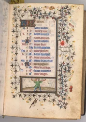 Getijdenboek van Karel de Edele, koning van Navarra 1361-1425: fol. 7r, juli, ca. 1405(Hours of Charles the Noble, King of Navarre 1361-1425: fol. 7r, July, c. 1405. )Master of the Brussels Initials and Associates |