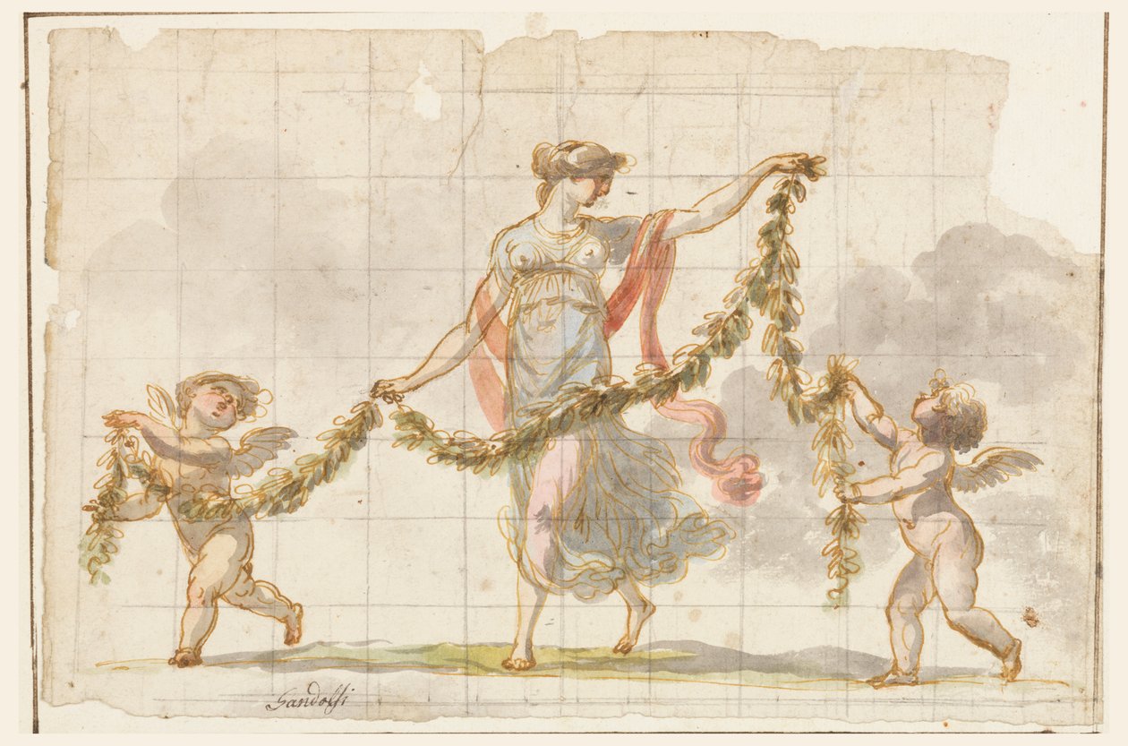 Niet gedateerd · Pen and brown ink, brush and watercolor on white laid paper, squared in graphite and lined, laid down