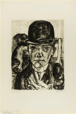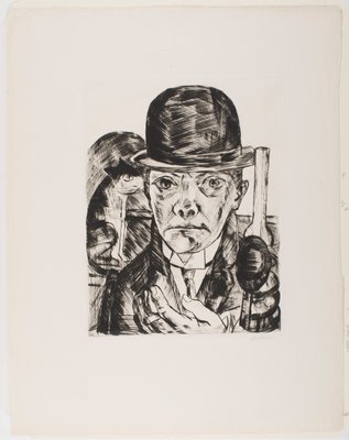 Zelfportret met bolhoed. Gravure van Max Beckmann (1884-1950)(Autoportrait avec un chapeau melon (Self Portrait With a Bowler Hat). Gravure de Max Bechmann (1884-1950))Max Beckmann |