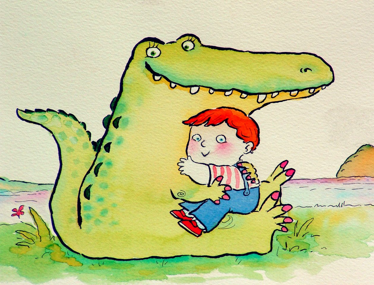 Krokodillenknuffel, of Beste Vrienden(Crocodile Hug, or Best Friends (pen & ink and wc on paper))Maylee Christie |
