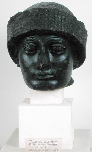(Head of Gudea, Prince of Lagesh, from Telloh (ancient Girsu) Neo-Sumerian, c.2150 BC (diorite))
