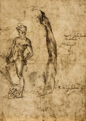 Studie voor David (pen inkt op papier)(Study for David (pen & ink on paper))Michelangelo Buonarroti |