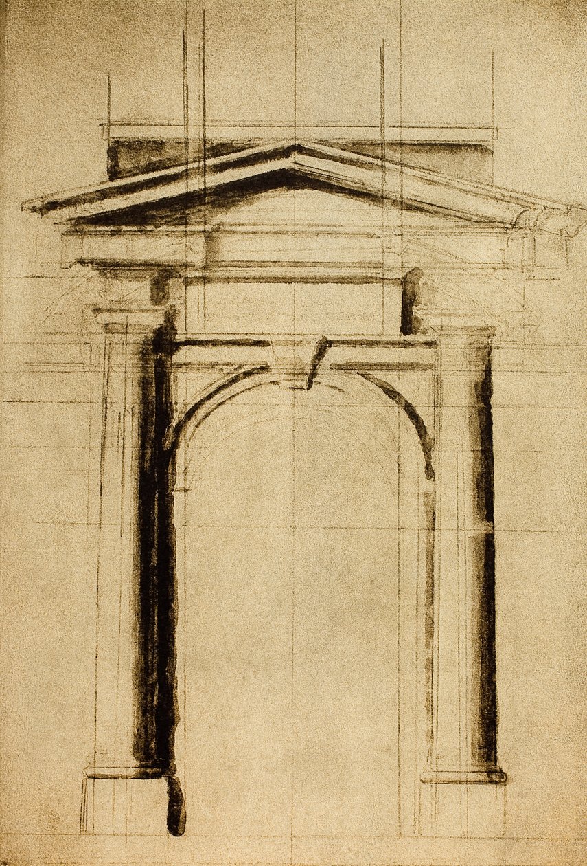 Architectonische studie van een deur met een driehoekig tympaan; tekening door Michelangelo(Architectonic study of a door with a triangular tympanum; drawing by Michelangelo. Casa Buonarroti, Florence)Michelangelo Buonarroti |