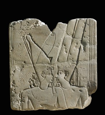 De god Amon omhelst Ramses II, Karnak, c.1401-1213 v.Chr.(The God Amon embracing Ramesses II, Karnak, c.1401-1213 BC (sandstone))New Kingdom Egyptian |