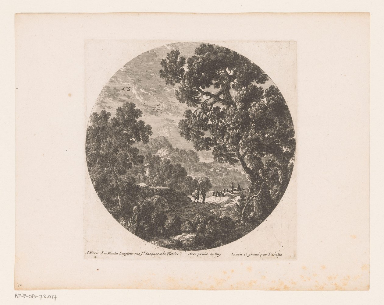 Landschap met wandelaars en herders met kudde(Landscape with Walkers and Shepherds with Flock)Nicolas Perelle(print maker),Adam Perelle(print maker),Gabriel Perelle(print maker) |