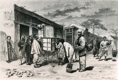 Activiteit in de straten van Peking (Beijing), met een diorama uit de 19e eeuw. Gravure naar een tekening van Sellier, naar een foto van Thomson, in 'Le Tour du Monde, Nouveau journal des Voyages', onder leiding van Edouard Charton, Parijs(Activity in the streets of Pekin (Beijing), with a 19th century diorama. Engraving from a drawing by Sellier, from a photograph by Thomson, in “Le Tour du Monde, Nouveau journal des Voyages”, edited by Edouard Charton, Paris)P. (after) Sellier |