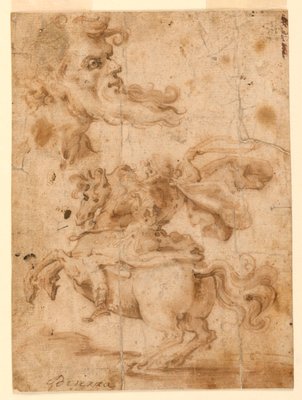 Het hoofd van een bebaarde man, een man te paard(The Head of a Bearded Man, a Man on Horseback)Paolo Emilio Besenzi |