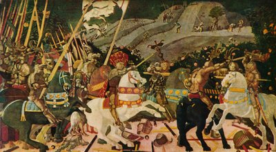 De Slag bij San Romano in 1432 (eitempera op populier)(The Battle of San Romano in 1432 (egg tempera on poplar))Paolo Uccello |